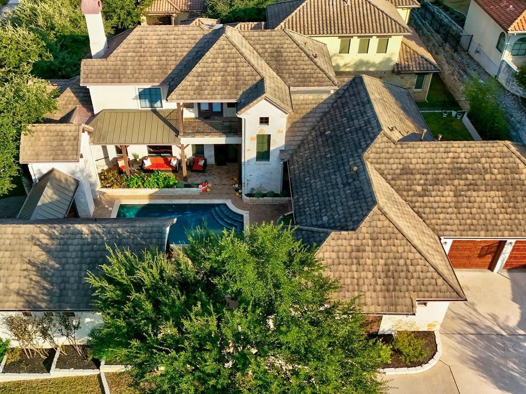 One of a Kind stone & stucco builders own home with casita in sought after Vista Pointe. Large courtyard with pool, spa & outdoor kitchen setup. The detached casita, primary bedroom and kitchen areas open to the amazing courtyard. Gorgeous updated kitchen with quartzite, stainless appliances, propane cooktop, built in refrigerator with large island, farmers sink and open concept. You will love all of the recent updates and extras including the beautiful new tile flooring on the lower level, and newer carpet on the second level, first floor primary suite and guest suite, high ceilings, custom ceilings and beams, a spacious laundry room with sink, a second floor patio with hill country views, cabinets in garage, back patio with a grassy area great for pets. Homeowners enjoy amenities including Lake Austin access via day dock, playground, pool, clubhouse, tennis courts and jogging trails. Close to Hill Country Galleria.