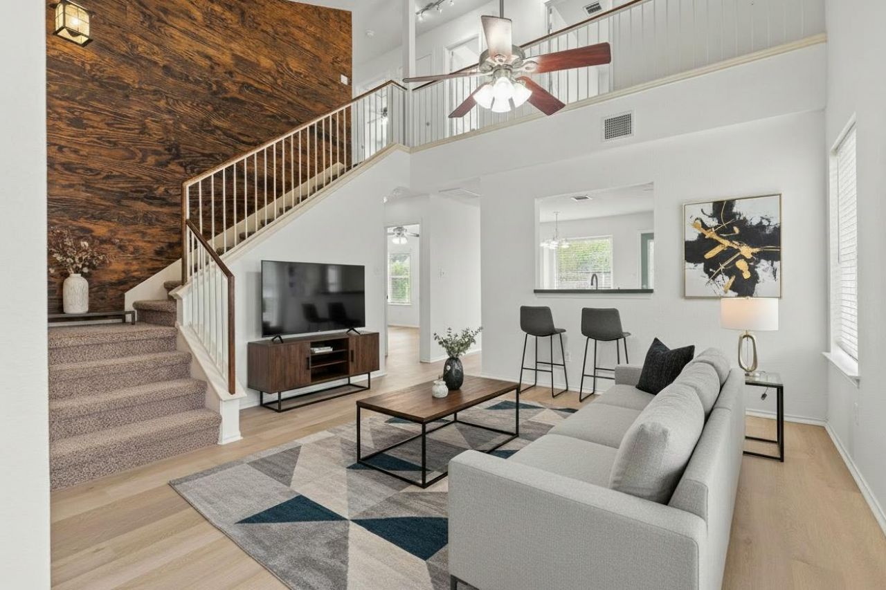 Block House beauty priced to sell! New luxury vinyl plank. Great floorplan with master down and two bedrooms and a flex/office/bedroom upstairs. Wood accented walls. Roof 2018, new HVAC inside and out 2025. New water heater 2024. Fridge, washer and dryer stay with the home. Blockhouse is an excellent community with three parks and two pools. Ball fields, hike and bike trails, and more. Located near The Crossover, HEB Center, 183A toll, and 1431.