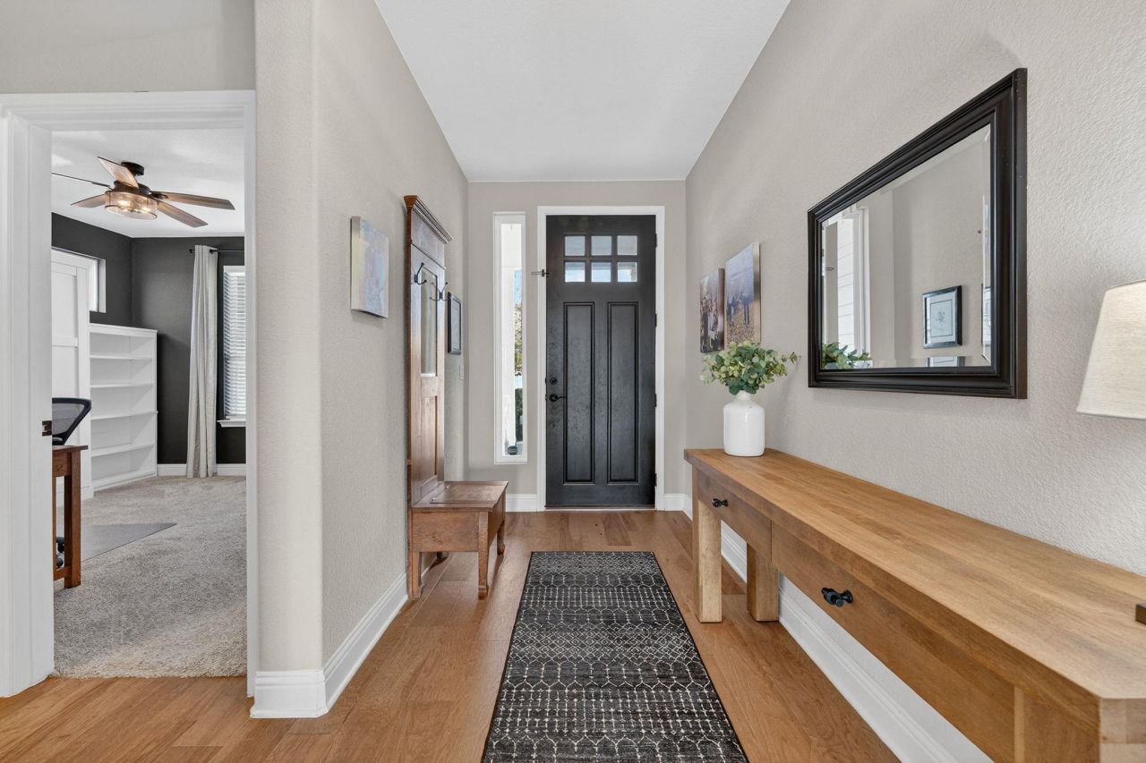 Welcome to 16636 Chevalin St, ideally positioned within the prestigious Provence subdivision. This thoughtfully upgraded residence is a rare offering, showcasing the largest backyard in the area and exceptional privacy. Nestled on a quiet cul-de-sac and backing to a serene greenbelt, the home enjoys expansive separation from neighboring properties.Perfectly located near the community pool and overlooking Provences picturesque vineyard, this home boasts one of the most desirable settings in the neighborhood. The well-designed floor plan offers two bedrooms and two full baths on the main level, with two additional bedrooms upstairs?providing versatility for both everyday living and hosting guests.Designed for refined indoor-outdoor living, the expansive deck and patio spaces create an entertainers retreat, featuring a custom pergola and a dedicated outdoor grilling area ideal for elegant gatherings or relaxed evenings at home.