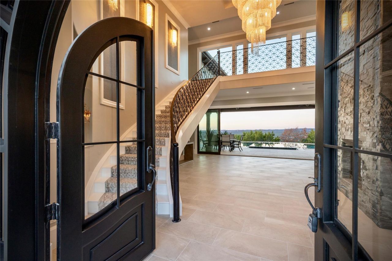 This beautifully designed home sits high above one of Austins most desirable communities, Davenport Ranch, on the edge of Westlake Hills, and offers stunning views of the surrounding Texas Hill Country, world-class architecture, and luxury finishes throughout.The dramatic entry features a sweeping staircase and abundant windows that fill the home with natural light, creating an immediate and inviting first impression. An open floor plan unfolds gradually, revealing a series of well-designed spaces: a cozy covered porch overlooking the spa, expansive Hill Country views, a nearly nightclub-sized bar and game room, a theater room with sunken seating, a study, a guest room, and more.The main level also includes a wonderful kitchen, living room, and dining area that works equally well for everyday living and entertaining. Upstairs, the home offers an enormous primary suite with a large walk-in closet, covered terrace, and a luxurious dressing area. A separate sleeping wing includes three additional bedroom suites and an oversized game room, providing privacy and flexibility.Above the three-car garage is a private one-bedroom, one-bath apartment with its own living room and kitchen, ideal for guests or extended stays.The home sits on approximately 2.6 acres, offering exceptional space and flexibility for future customization in accordance with HOA guidelines.