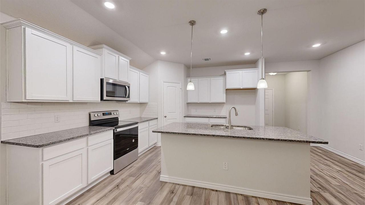 Find your home in Turnbo Ranch Traditions in Killeen, Texas with the Everett floorplan. With approximately 2,150 sq. ft., youll have the perfect space in this 3-4 bedroom, 2 bath layout. Park your car or store your belongings in the attached 2-car garage.When you enter the home, youll be greeted with the beautiful open-concept design living area, that blends the kitchen and great room. The kitchen features flat panel birch cabinetry and granite countertops. It is set off from the living area by a kitchen island with a built-in sink. Connected to the kitchen in the dining area that can be opted for the study.Walking through the great room, youll find the primary bedroom with an attached bathroom. The bathroom has a double vanity and a walk-in shower that can be opted for a tub and shower, and a spacious walk-in closet for all your belongings.The secondary bedrooms are cozy and carpeted, with plenty of closet space and easy access to a separate bathroom. The game-room with an option of a bedroom gives you control to customize the house to meet your needs.Enjoy nature from the backyard under the covered patio that is connected to the great room. Not only does every D.R. Horton home have a floorplan built for everyday functionality, but smart home technology is also included. Monitor your home and control your comfort through your phone, the Qolsys panel, or voice command.Talk to us today to learn more about why the Everett floorplan is perfect for you!