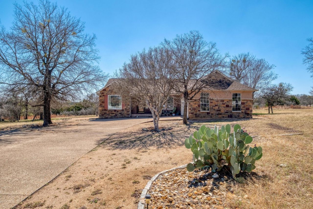 Discover refined Hill Country living in the prestigious, gated River Ridge Ranch, a scenic 1,200-acre community nestled along the Lampasas River just 29 miles from Georgetown. Situated on 3.38 private acres with sweeping countryside views, this custom-built home offers the perfect blend of luxury, comfort, and natural beauty. An inviting open floor plan is highlighted by a wall of oversized windows that frame the rolling landscape and fill the home with natural light. Stained concrete floors, a wood-burning stove, and a spacious living and dining area create a warm yet elevated atmosphere ideal for entertaining. The gourmet kitchen is a chefs dream, featuring granite countertops, a gas cooktop, center island, abundant storage, and a bright breakfast area overlooking the hills. The thoughtfully designed layout includes three bedrooms, two baths, a dedicated office, and a generous owners suite with a soaking tub, separate shower, and a walk-in closet that doubles as a saferoom. Outdoor living is equally impressive with an screened patio, expansive driveway and asphalt parking area for guests, and ample space for a future pool. Wildlife such as deer, fox, and turkey roam freely, enhancing the peaceful setting. Residents enjoy private river access, picnic areas, scenic trails, and the rare allowance of up to two horses. If youre seeking privacy, views, and upscale rural living within a well-established gated community, this exceptional property is a must-see.