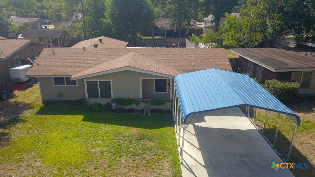 SPRING ON IN TO YOUR NEW HOME !!! Open floor plan for living, dining and kitchen makes entertaining a breeze. There are 4 bedrooms & 2 baths plus covered back porch. Central A/C replaced in 2023 - plus a new mini-split for the main bedroom. Mini-split makes it perfect for day sleepers that like it cold and dark. Don't need 4 bedrooms then for this price consider turning the extra bedroom in to a great nursery or even a new ensuite oasis for the main bedroom. Other ideas for the extra room are to make it a office or game room/play room. Garage is currently used for storage : large walk in pantry, extra room/shelf for those precious items. Or can be turned back into 1 car garage for your vehicle. Has a large metal carport for coverage of a higher than normal vehicle. There is even a concrete slab just waiting for you to build on. Perfect for a work shop, she shed, play house or extra storage. Check out the virtual tour and schedule a showing.