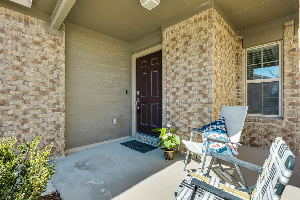 This well-kept extraordinary single family residence in Jarrell is truly turn key ready to be your next home! Upon entering, the open floor plan immediately creates an expansive atmosphere, guiding you into a kitchen designed for both functionality and aesthetic appeal. This culinary space features sophisticated stone countertops, elegant shaker cabinets, and a stylish backsplash, complemented by a practical kitchen peninsula and a convenient kitchen bar, perfect for preparing meals and engaging with others. The living room, enhanced by a striking vaulted ceiling, provides a bright and airy environment, offering a comfortable setting for daily living. The residence offers three peaceful bedrooms, each designed as a private retreat, with one featuring a generously sized walk-in closet providing ample storage. The primary bathroom showcases a double vanity for convenience, a relaxing tile tub, and a distinct tiled walk in shower, ensuring a comfortable and refreshing experience. Outside, a welcoming porch invites moments of quiet contemplation, while the fenced backyard offers a secure area for outdoor enjoyment. Another great feature of this wonderful home is that it backs to greenspace for additional privacy. This unique property is also located on a cul-de-sac street and has minimal pass through traffic. The neighborhood provides tons of amenities with parks, pools and hiking trails!