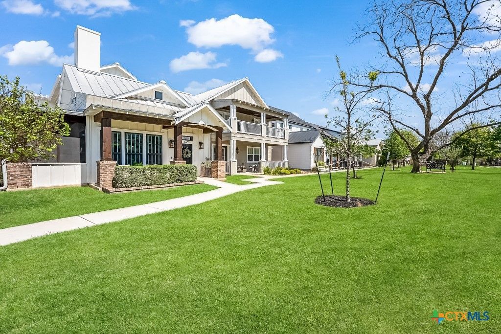 Located in the heart of Town Creek, walking distance to downtown New Braunfels, this 2,297-square-foot home offers four bedrooms and three bathrooms, with a flexible fourth bedroom ideal for a home office or guest space. Contemporary finishes and an open floor plan create an easy flow through the main living areas, while a screened-in porch provides a quiet retreat overlooking the neighborhoods green space. Thoughtful upgrades include a retractable awning for shaded outdoor living, a built-in gas connection for grilling, and a professionally finished garage floor. Inside, enjoy a cozy fireplace, generous pantry and laundry room, and a dedicated wine and coffee bar, perfect for everyday living or entertaining. Town Creek is known for its walkable, small urban community lifestyle, with easy access to Sporthalle gym, Dos Rios Mexican Restaurant, RosieLynn's Ice Cream, Frog Holler, Bloom Salon, Two Rivers Running Store, and a variety of professional offices and local businesses. Walkability is a defining feature, offering a connected, convenient, and community-driven way of living. An oversized two-car garage and additional driveway parking complete this immaculate maintained home.