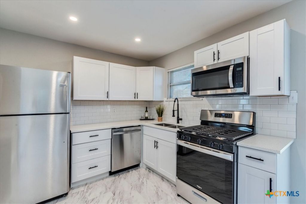 Welcome to 704 S 3rd Street, a beautifully remodeled home located less than half a mile from historic downtown Copperas Cove. Enjoy the convenience of being within walking distance to local restaurants, shops, and the movie theater, all while living in a city known for its strong sense of community and quick access to Fort Cavazos, Killeen, and the greater Central Texas area. From the moment you arrive, the homes character and curb appeal immediately stand out. Start your mornings on the inviting covered front porch before stepping inside to original hardwood floors and an open living space filled with natural light. The highlight of the home is the fully updated kitchen featuring modern white cabinetry, quartz countertops, stainless-steel appliances, and an open dining area alongside a beautifully renovated guest bathroom. The layout offers three spacious bedrooms with ceiling fans and generous closet space, thoughtfully separated from the main living areas. Major system updates include a new HVAC system and water heater replaced in 2022, providing added efficiency and peace of mind. Additional features include a one-car garage, stackable washer and dryer connections, and a large covered back patio overlooking a spacious backyard ready for your personal touch. If youre looking for walkability, modern updates, and the opportunity to own for the cost of renting, this Copperas Cove home is one you wont want to miss. Schedule your showing today!