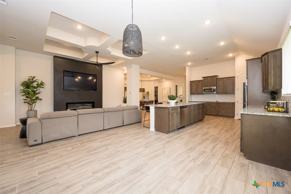 Set on an over quarter-acre lot, this home offers the space youve been looking for with a backyard ready for relaxing, entertaining, or future possibilities. The exterior makes a strong first impression, leading into an immaculate interior designed for both comfort and style. Inside, wood-look tile floors flow through a stunning open living area that seamlessly connects the dining room, great room, and kitchen. The dining room features a tray ceiling that adds character, while the great room is anchored by a bold fireplace. The island kitchen is a standout with stainless steel appliances, granite counters, a white subway tile backsplash, and an abundance of cabinet space to keep everything organized. The owners suite is generously sized, creating a true retreat at the end of the day. The en suite bath feels like a spa with a modern soaking tub, separate walk-in shower, and plenty of space to unwind. A 3-car garage adds convenience and flexibility, and the covered patio out back is the perfect spot to enjoy the expansive yard. This home combines space, style, and thoughtful design in a way thats easy to appreciate from the moment you walk in.